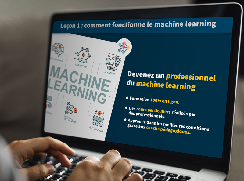 Notre centre de formation propose des formations à distance avec un accompagnement 100 % personnalisé. Les cours sont dispensés par des professionnels du Machine Learning, qui sont engagés dans votre réussite. Vous êtes suivi(e) tout au long de votre apprentissage par un formateur personnel certifié.